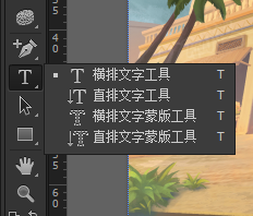 包括横排文字工具、直排文字工具、横排文字蒙版工具、直排文字蒙版工具,其中经常用到的是前两种。