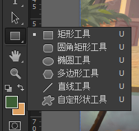 十八、形状:分别是矩形工具、圆角矩形工具、椭圆矩形工具、多边形工具、直线工具、自定形工具——