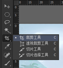 其中裁剪工具只能进行最简单的长宽修改,透视裁剪工具可以拉伸出透视的效果,切片工具可以将一张图裁剪成数张自己需要的大小,切片选择工具则可以对已经切好的图片进行调整。