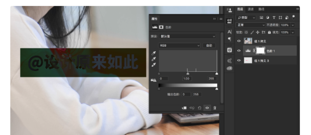- 把色阶右边的滑块一直向左边滑动,直到文字消失为止。